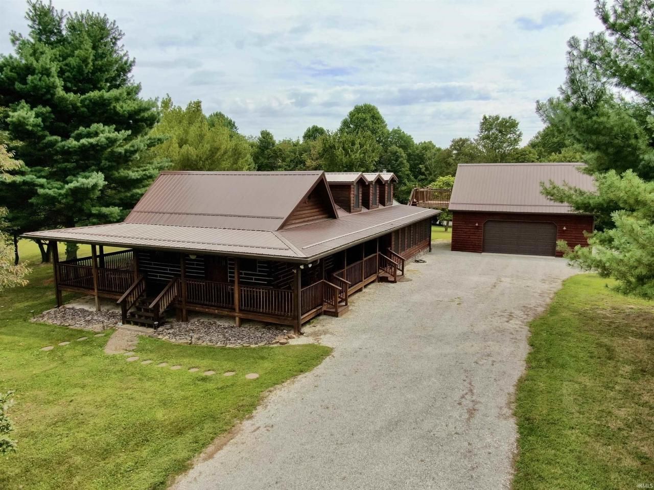 Escape the hustle and bustle and find your tranquil retreat at 3090 Shamrock Lane in Birdseye, Indiana. This charming log cabin, constructed in 2000 and expanded in 2019, offers a perfect blend of rustic allure and modern convenience, all just minutes away from Patoka Lake, local wineries, and breweries. Imagine relaxing on your wrap-around covered porch, surrounded by the sights and sounds of nature?whether it's bird songs or moonlit nights, this space promises peaceful moments. The cabin spans 2367 square feet and is ideal for weekend getaways or full-time country living. Step inside and be greeted by stunning hardwood floors, solid 7 timbers, and an abundance of new Anderson windows framing beautiful views of the surrounding wildlife. The spacious kitchen was completely remodeled, with its ample cabinets and counter space, includes a new refrigerator and range/oven. It opens to a 19 x 10 dining area, perfect for entertaining. On the main floor, you'll find a 14 x 12 bedroom with an en-suite bathroom featuring a walk-in shower. The 30 x 12 family room boasts a wood-burning stove and plenty of natural light, while a 13 x 11 space offers options for a game room or additional sitting area. Upstairs, two loft areas await: a 12 x 16 space ideal for two beds and a 30 x 23 loft with a built-in bed, multiple cove areas for extra beds, and space for recreation or games. The loft also provides a stunning view of the cabin's addition. Outside, a 24 x 30 outbuilding with an eagles roost deck connects to a 15 x 15 remodeled area (not included in square footage of house). This versatile space could serve as a guest area, office, or den. The outbuilding is also perfect for storing vehicles, boats, ATVs, or other recreational gear. Nestled on three lots, this property offers breathtaking views, ample trees, and the ultimate escape from city life. The spacious driveway accommodates extra room for a boat, pontoon and/or extra parking, making this cabin a must-see for anyone seeking a serene retreat. Pictures and descriptions can't fully capture its charm?come see it for yourself! Included in sale: Refrigerator (2025), Range/Oven, Washer/Dryer Combo (2025), Window Treatments, Heat Pump (July 2025)